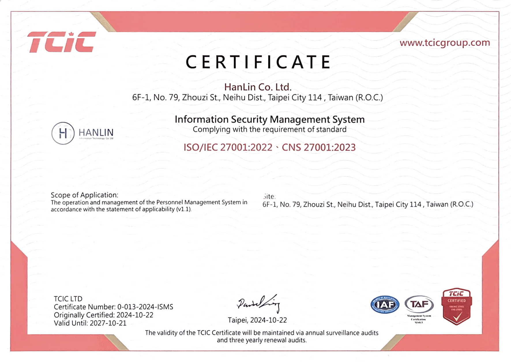 翰霖導入 ISO 27001 資訊安全管理體系,並通過金融服務專業軟體工程師驗證。將資安機制融入開發流程,確保產品符合高標準的安全性與穩定性要求。